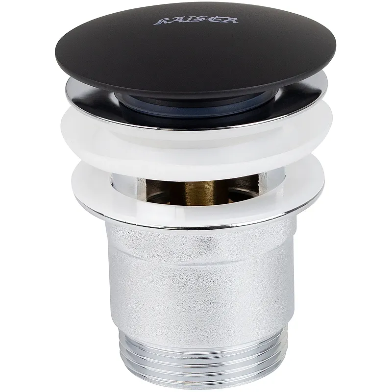 Донный клапан Kaiser 8040-9 click-clack.Характеристики: Цвет: черный матовый. Материал: латунь. Система click-clack. Форма: круглая. С переливом. Подключение: G 1 1/4. В комплекте поставки: Донный клапан.
