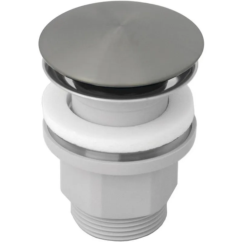 Донный клапан Omnires A64IN click-clack к сифону для умывальника.Характеристики: Цвет: инокс (нержавеющая сталь). Размеры (ШхВхД): 6,3х11,5х6,3 см. Подключение: 1 1/4G. С переливом. Можно использовать для умывальников без перелива. В комплекте поставки: донный клапан.