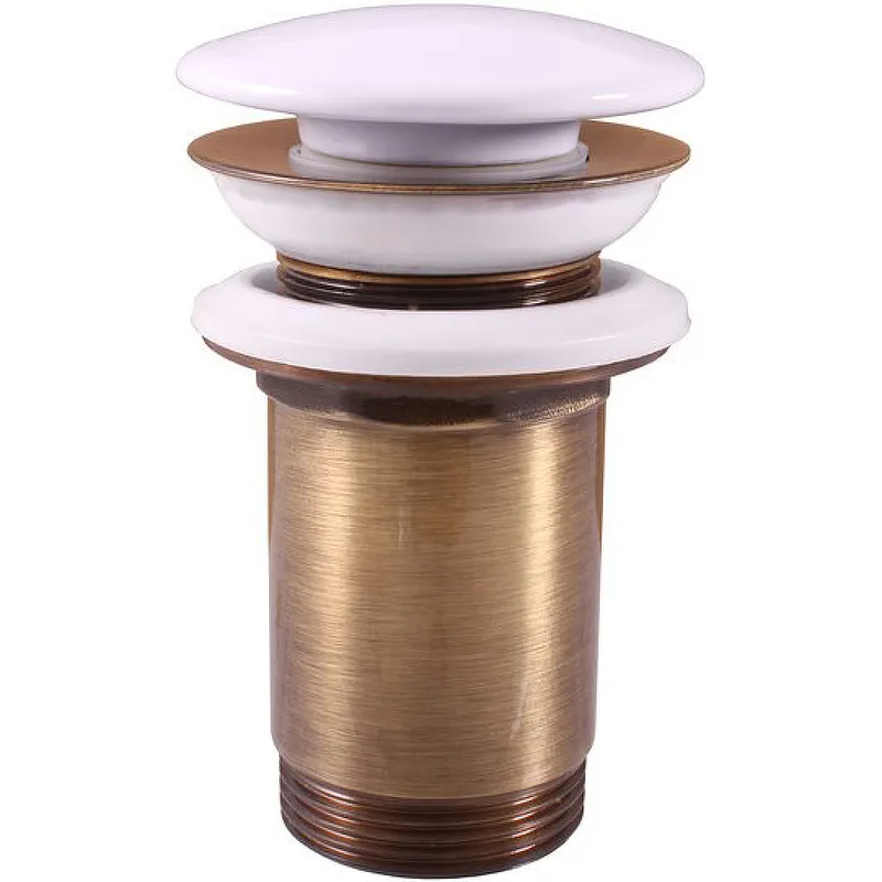 Донный клапан Rav Slezak MD0485SM click-clack.Характеристики: Цвет: бронза. Материал: латунь. Установка: на раковину. Форма: круглая. С большой заглушкой. С регулируемой высотой. С керамической белой крышкой. В комплекте поставки: Донный клапан.