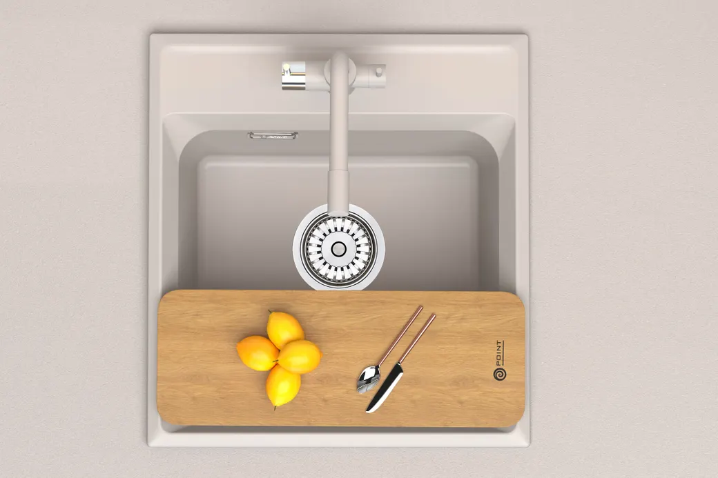 Разделочная доска Point Мисти 46 дуб PN3011D для приготовления продуктов, изготовленная из натурального дуба и снабженная специальными вырезами на обратной стороне для фиксации на верхнем бортике кухонной мойки - это стильное и функциональное решение для вашей кухни.