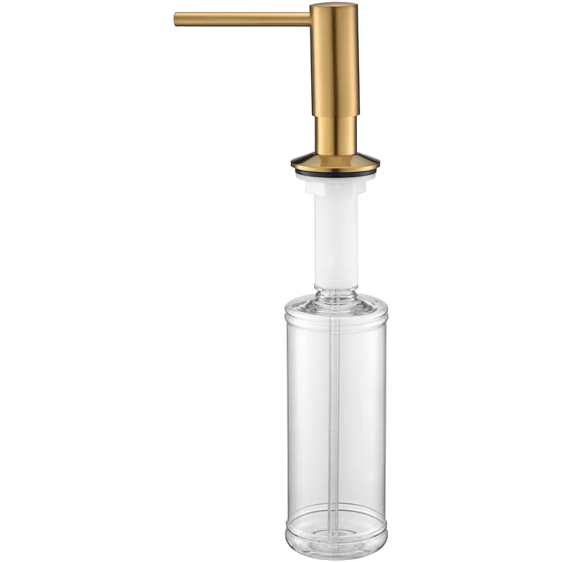 Дозатор для моющего средства Paulmark Decus D004-BG.Характеристики: Цвет: брашированное золото. Поверхность: матовая. Материал: латунь, пластик. Объем: 350 мл. Монтаж: встраиваемый. В комплекте поставки: Дозатор для моющего средства.