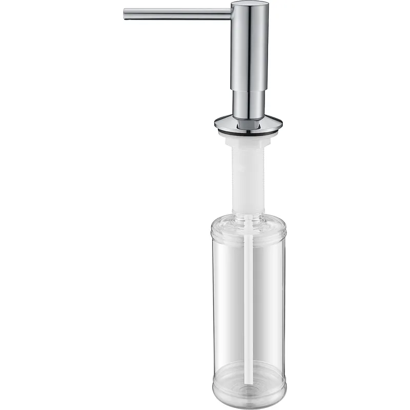 Встраиваемый дозатор для моющего средства Paulmark Decus D004-CR.Характеристики: Форма: круглая. Цвет: хром. Материалы: латунь, пластик. Объем: 350 мл. Диаметр кнопки: 2,7 см. Монтаж: встраиваемый. Диаметр отверстия для монтажа: 2,5 см. В комплекте поставки: Дозатор.