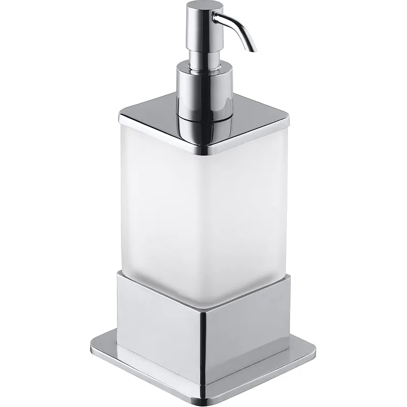 Дозатор для жидкого мыла Bemeta Plaza 140109161.Характеристики: Цвет: хром. Материал: латунь, стекло матовое. Покрытие: глянцевое. Монтаж: настольный. Габариты (ШxВxД): 75 x 180 x 75 мм. Объем: 200 мл. В комплекте поставки: Дозатор для жидкого мыла.