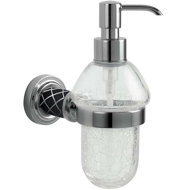 Дозатор для жидкого мыла Boheme Murano 10912-B-CR.Характеристики: Материал: латунь, стекло. Цвет: хром, черный. Декор: кракелюр, муранское стекло. Монтаж: настенный. В комплекте поставки: Дозатор для жидкого мыла. Крепления.