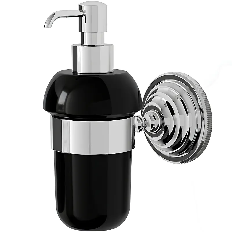 Дозатор для жидкого мыла Devon&Devon Black Diamond BLKD530CRNE.Характеристики: Цвет: хром, черный. Материал: латунь, керамика. Метод крепления: шурупы. Монтаж: на стену. В комплекте поставки: Дозатор для жидкого мыла. Держатель. Крепления.