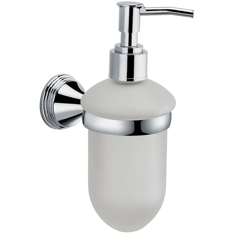 Дозатор для жидкого мыла Grampus Laguna GR-7812.Характеристики: Цвет держателя и дозатора: хром. Материал держателя и дозатора: металл. Материал колбы: матовое стекло. Размеры (ШхВхД): 70х180х110 мм. Метод крепления: шурупы. Монтаж: настенный. В комплекте поставки: Дозатор для жидкого мыла. Настенный держатель.