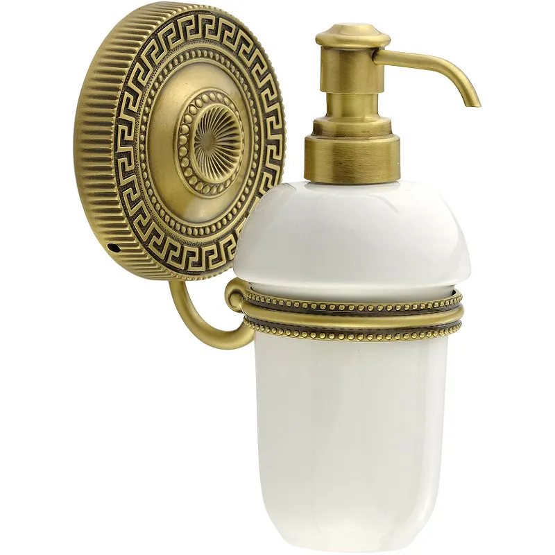 Дозатор для жидкого мыла Migliore Montecarlo 31500.Характеристики: Цвет: бронза, белый. Материал: латунь, керамика. Поверхность: глянцевая. Объем колбы: 0,17 мл. Диаметр розетки: 95 мм. Габариты (ШхВхД): 95 x 170 x 125 мм. Метод крепления: шурупы. Монтаж: подвесной. В комплекте поставки: Дозатор для жидкого мыла. Комплект креплений.