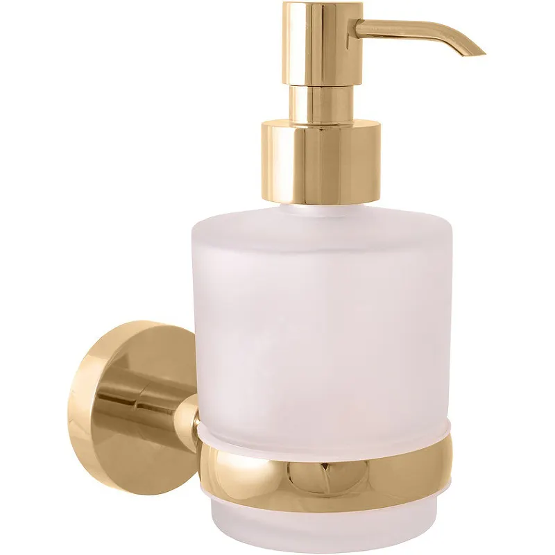 Дозатор для жидкого мыла Rav Slezak Colorado COA0303Z.Характеристики: Цвет: золото. Материал: латунь, стекло. Поверхность: глянцевая. Форма розетки: круглая. Монтаж: настенный. Размер (ШхВхГ): 71,5х154х137,2 мм. В комплекте поставки: Дозатор для жидкого мыла. Настенный держатель.