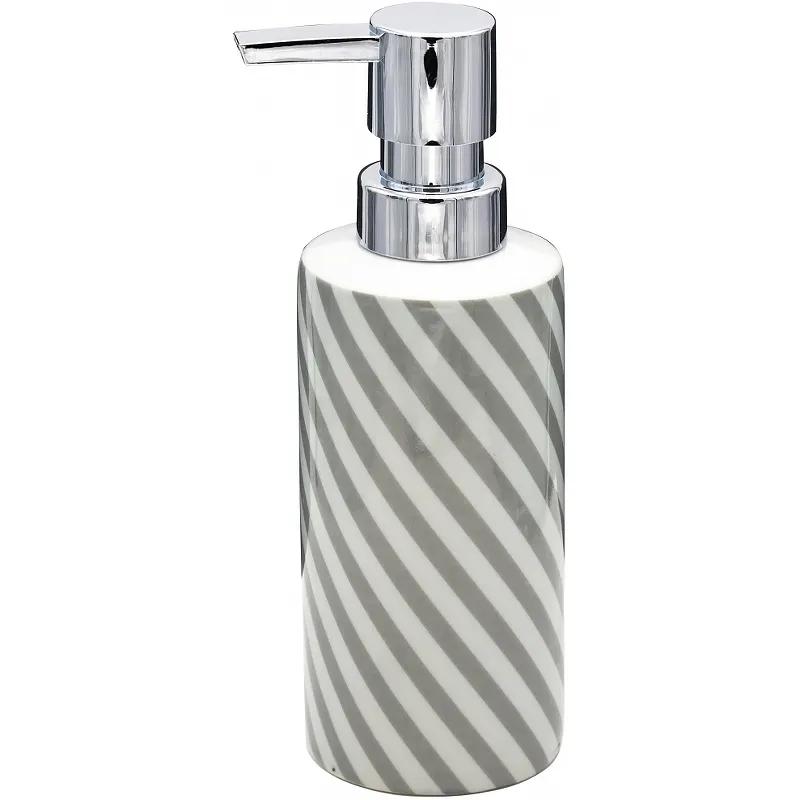 - Современный дизайн: Керамический дозатор для жидкого мыла прекрасно вписывается в любой интерьер благодаря стильному серому цвету и элегантным формам.