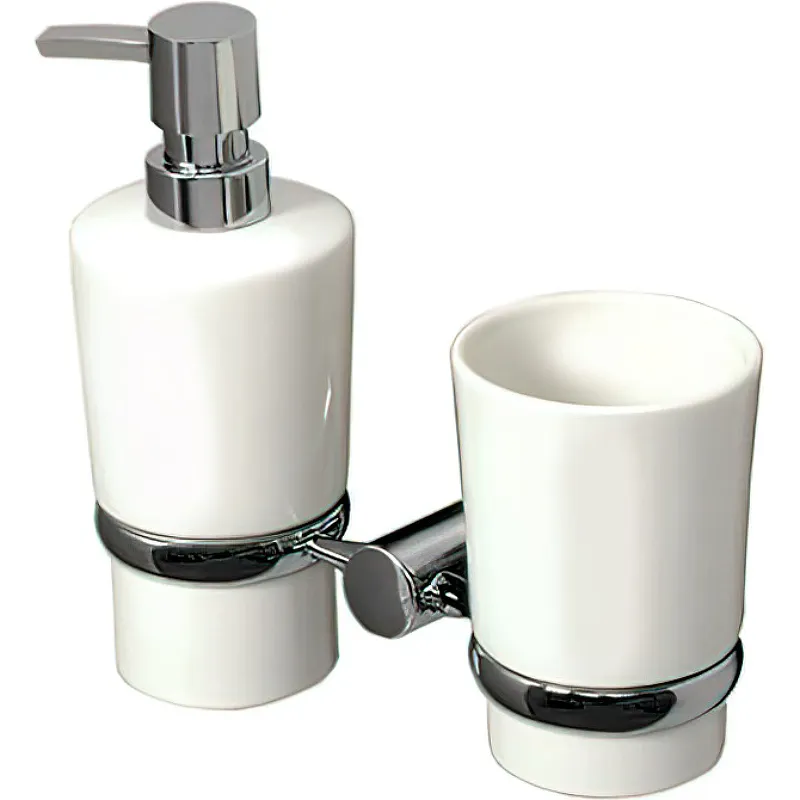 Дозатор для жидкого мыла WasserKRAFT K-28289 со стаканом для зубных щеток.Характеристики: Цвет: хром, белый. Материал: металл, фарфор. Уплотнительные пластиковые кольца. Покрытие: хромоникелевое. Монтаж: настенный. В комплекте поставки: Стакан. Дозатор жидкого мыла. Держатель двойной.