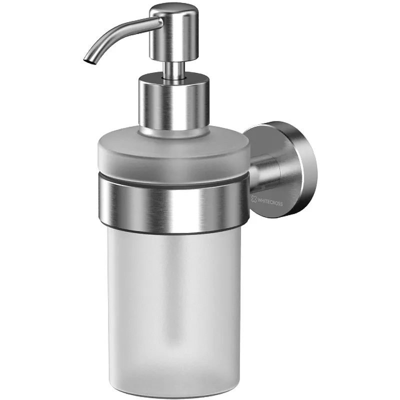 Дозатор для жидкого мыла Whitecross Ergo nickel brushed ER2240NIB.Характеристики: Цвет держателя и дозатора: брашированный никель. Материал держателя и дозатора: латунь. Материал колбы: матовое стекло. Покрытие: PVD. Размеры (ШхВхД): 68х174х132 мм. Объем: 150 мл. Метод крепления: шурупы. Монтаж: настенный. В комплекте поставки: Дозатор для жидкого мыла. Крепежный набор.