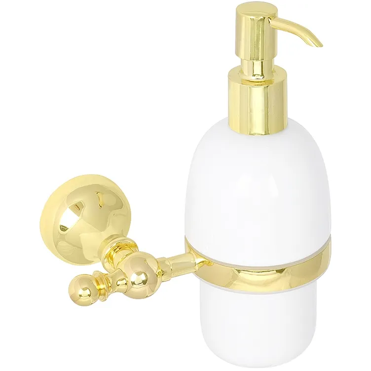 Дозатор жидкого мыла Veragio Gialetta VR.GIL-6470.DO. Гальваническое покрытие с использованием золота 24 карата с защитным прозрачным покрытием лаком сверху.Технические данные: Цвет: золото. Материал: латунь, керамика. Монтаж: настенный. Метод крепления: на шурупы. В комплекте поставки: дозатор жидкого мыла.