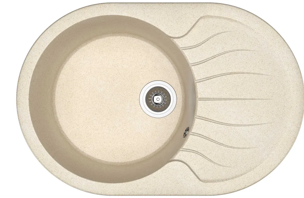 - Высокопрочная кухонная мойка: Литьевой мрамор обеспечивает долговечность и устойчивость к царапинам и ударам.