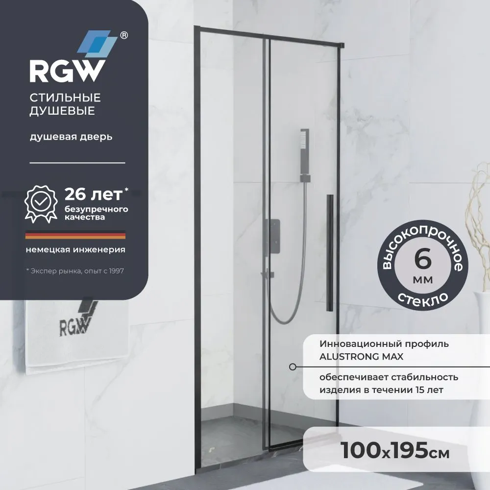 Душевая дверь RGW SV-12-B, размером 100x195 см, станет функциональным дополнением вашей ванной комнаты. Этот продукт от бренда RGW объединяет в себе стиль и надежность. Прозрачная стеклянная дверь в душевую с раздвижной конструкцией и черным профилем не только визуально расширяет пространство, но и придает ему современный вид.
