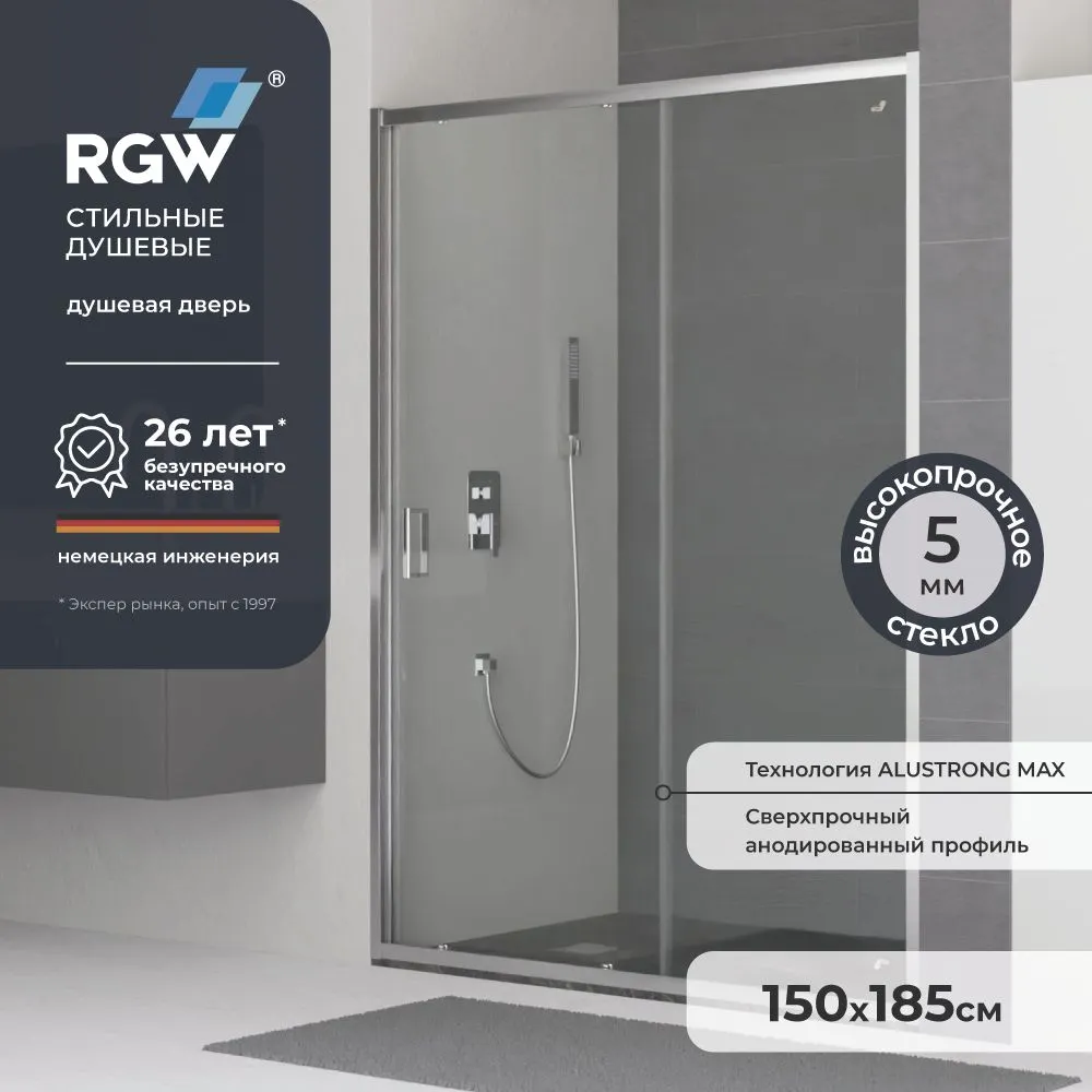 Душевая дверь 150*185 RGW CL-14 хром/Прозрачное/5 мм