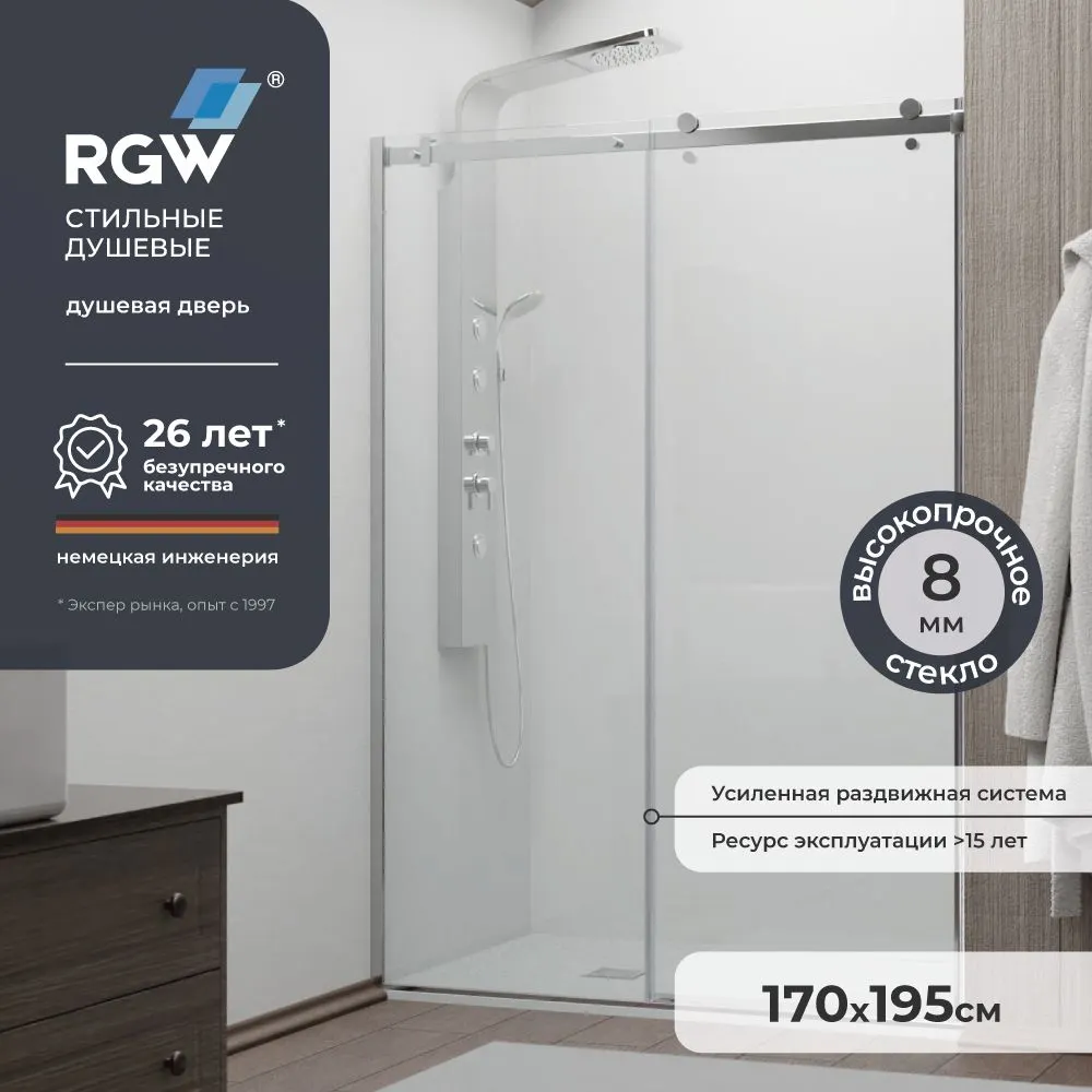 Эта душевая дверь RGW станет стильным и практичным решением для вашей ванной комнаты, обеспечивая комфорт и удобство в использовании.