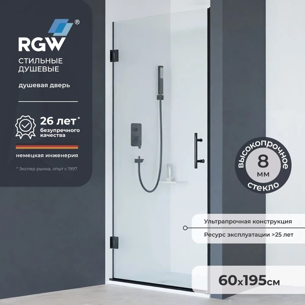 Эта стеклянная дверь в душевую RGW гармонично сочетает в себе стиль и инновации, предлагая надежное и долговечное решение для вашего дома.