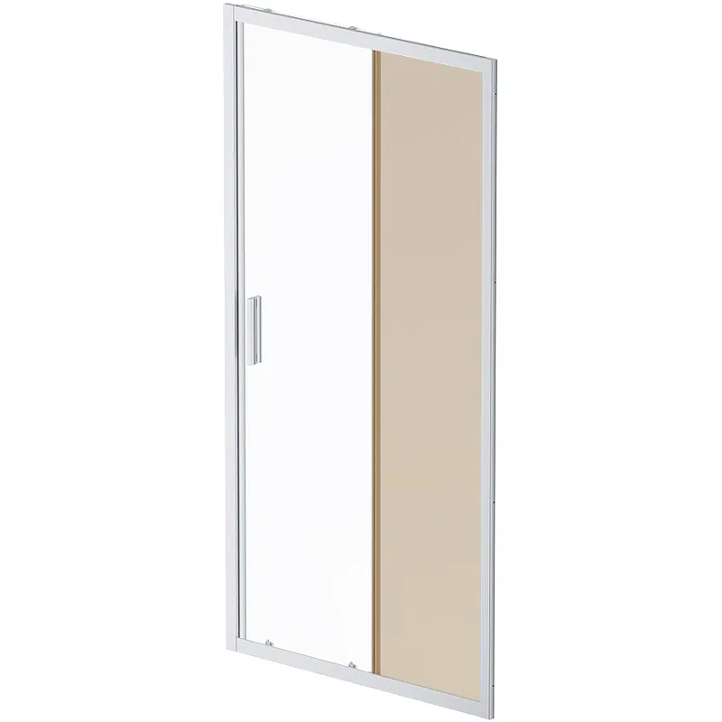 Душевая дверь AM.PM Gem Solo 100x195 W90G-100-1-195MBr.Характеристики: Материал профиля: алюминий. Цвет профиля: хром матовый. Материал полотна двери: прозрачное, бронзовое стекло. Размеры с учетом регулировки (ШхВ): 990-1010х1950 мм. Ширина входа: 430 мм. Конструкция двери: раздвижная. Толщина полотна двери: 5/6 мм. Количество секций двери: 2. Ориентация: универсальная. Монтаж: напольный, на поддон. Регулировка ширины за счет боковых профилей. В комплекте поставки: душевая дверь, комплектующие, инструкция.