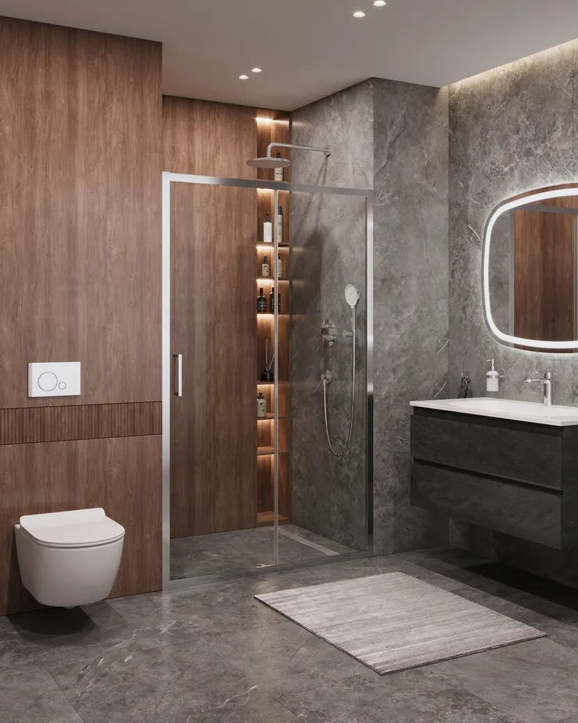 - Эстетичный внешний вид: Прозрачное стекло и хромированные элементы придают ванной комнате элегантность.