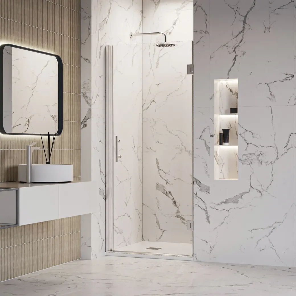 Душевая дверь INRAIN MIT-011 — это сочетание стиля и функциональности, идеально подходящее для современных ванных комнат. Прозрачное стекло толщиной 8 мм гарантирует долговечность и элегантный внешний вид, а хромированный профиль добавляет изысканности. Эта душевая дверь в нишу обеспечивает легкий и безопасный доступ благодаря распашной конструкции, что делает её удобной для пользователей всех возрастов.