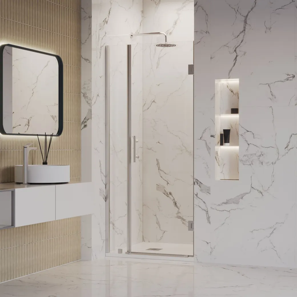 Обновите вашу ванную комнату с душевой дверью INRAIN MIT-012. Эта распашная душевая дверь 90х195 см с прозрачным стеклом и хромированным профилем не только функциональна, но и эстетична. Прочная конструкция и современный дизайн делают её отличным выбором для любого интерьера.