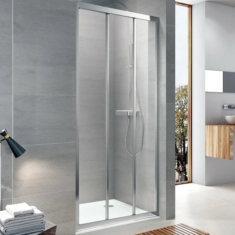 Душевая дверь Koller Pool Trend 90 TT90C.Характеристики: Цвет профиля: хром. Материал профиля: сплав Al+Mg+Si (Алюминий+Магний+Кремний). Данная методика обладает отличной коррозийной стойкостью. Материал ручки: сталь. Исполнение полотна двери: безопасное прозрачное закаленное стекло с водоотталкивающим покрытием TRANSPARENT CALC FREE. Толщина стекла: 6 мм. Регулируемая ширина: 89-93 см. Высота: 190 см. Ширина входа: 47.1 см. Количество секций двери: 3. Тип открывания двери: раздвижная. Двойные бесшумные ролики : корпус выполнен из стали (класс 17), ролик сделан из прочного тефлонового кремния, который создает эффект самосмазывающегося подшипника. Ориентация: универсальная. Монтаж: в нишу. Допуск на установку: 15 мм. В комплекте поставки: Душевая дверь.