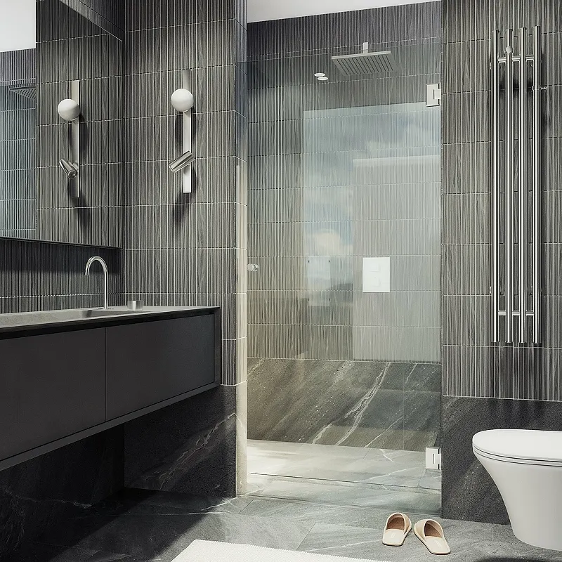 Душевая дверь Maybah Glass MGD-509-4 905x1950 на петлях.Характеристики: Цвет профиля: хром глянцевый. Материал профиля: нержавеющая сталь. Вид профиля: петли. Исполнение полотна двери: прозрачное закаленное стекло, толщиной 8 мм. Размеры (ШхВ): 905х1950 мм. Конструкция двери: распашная (открывается внутрь и наружу). Ориентация: универсальная. Установка: на поддон, на пол. Монтаж: в нишу. В комплекте поставки: Закаленное стекло, цвет Бесцветный, толщина 8 мм 1950х890 мм - 1 шт. Петля стена-стекло, цвет Хром глянцевый - 2 шт. Комплект крепежа - 1 шт. Уплотнитель стена-стекло - 2 шт. Уплотнитель стекло-пол - 1 шт. Ручка кноб - 1 шт. Инструкция по монтажу - 1 шт.