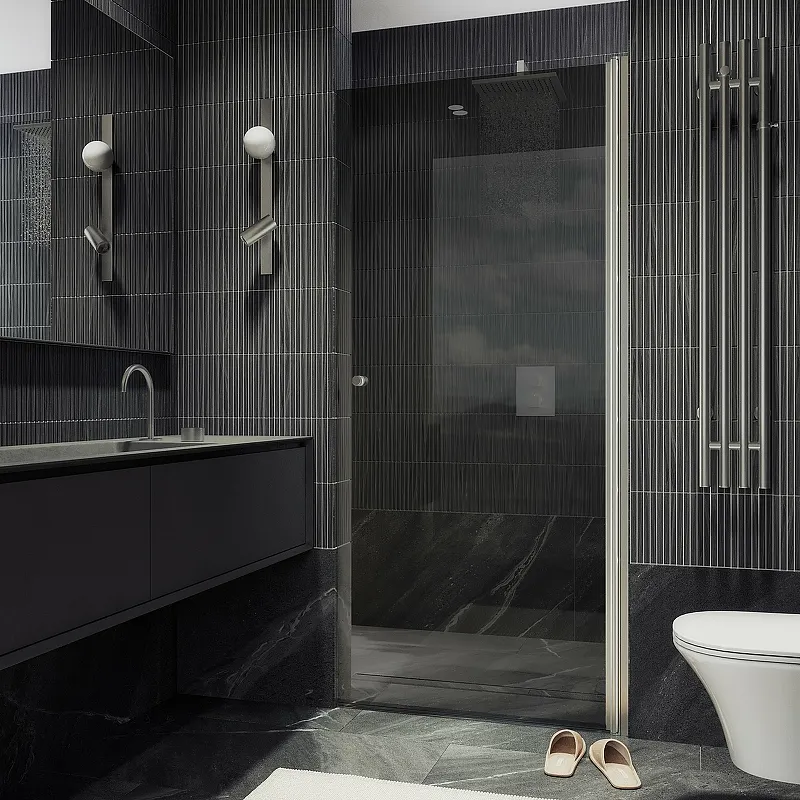 Душевая дверь Maybah Glass MGD-806-5 800x1980 на монопетле.Характеристики: Цвет профиля: хром матовый. Материал профиля: анодированный алюминий. Вид профиля: монопетля. Исполнение полотна двери: графитовое закаленное стекло, толщиной 6 мм. Размеры (ШхВ): 805х1980 мм. Регулировочная ширина: 800-805 мм. Конструкция двери: распашная (открывается внутрь и наружу). Ориентация: универсальная. Установка: на поддон, на пол. Монтаж: в нишу. В комплекте поставки: Закаленное стекло, цвет Графит, толщина 6 мм 1950х740 мм - 1 шт. Монопетля, цвет Хром матовый - 1 шт. Комплект крепежа - 1 шт. Уплотнитель – 2 шт. Инструкция по монтажу - 1 шт. Ручка кноб - 1 шт.