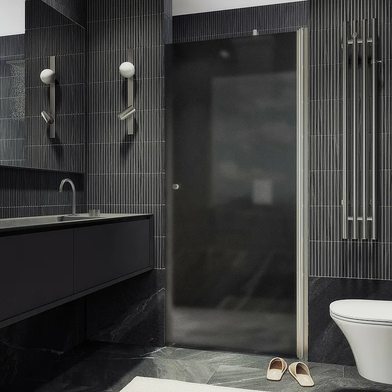 Душевая дверь Maybah Glass MGD-807-5 800x1980 на монопетле.Характеристики: Цвет профиля: хром матовый. Материал профиля: анодированный алюминий. Вид профиля: монопетля. Исполнение полотна двери: графитовое матовое закаленное стекло, толщиной 6 мм. Размеры (ШхВ): 805х1980 мм. Регулировочная ширина: 800-805 мм. Конструкция двери: распашная (открывается внутрь и наружу). Ориентация: универсальная. Установка: на поддон, на пол. Монтаж: в нишу. В комплекте поставки: Закаленное стекло, цвет Графит матовый, толщина 6 мм 1950х740 мм - 1 шт. Монопетля, цвет Хром матовый - 1 шт. Комплект крепежа - 1 шт. Уплотнитель – 2 шт. Инструкция по монтажу - 1 шт. Ручка кноб - 1 шт.
