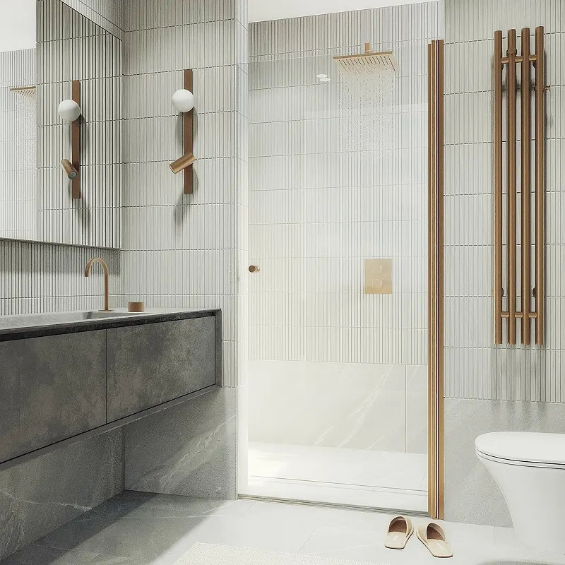 Душевая дверь Maybah Glass MGD-809-2 900x1980 на монопетле.Характеристики: Цвет профиля: бронза. Материал профиля: анодированный алюминий. Вид профиля: монопетля. Исполнение полотна двери: прозрачное закаленное стекло, толщиной 6 мм. Размеры (ШхВ): 905х1980 мм. Регулировочная ширина: 900-905 мм. Конструкция двери: распашная (открывается внутрь и наружу). Ориентация: универсальная. Установка: на поддон, на пол. Монтаж: в нишу. В комплекте поставки: Закаленное стекло, цвет Бесцветный, толщина 6 мм 1950х840 мм - 1 шт. Монопетля, цвет Бронза - 1 шт. Комплект крепежа - 1 шт. Уплотнитель – 2 шт. Инструкция по монтажу - 1 шт. Ручка кноб - 1 шт.