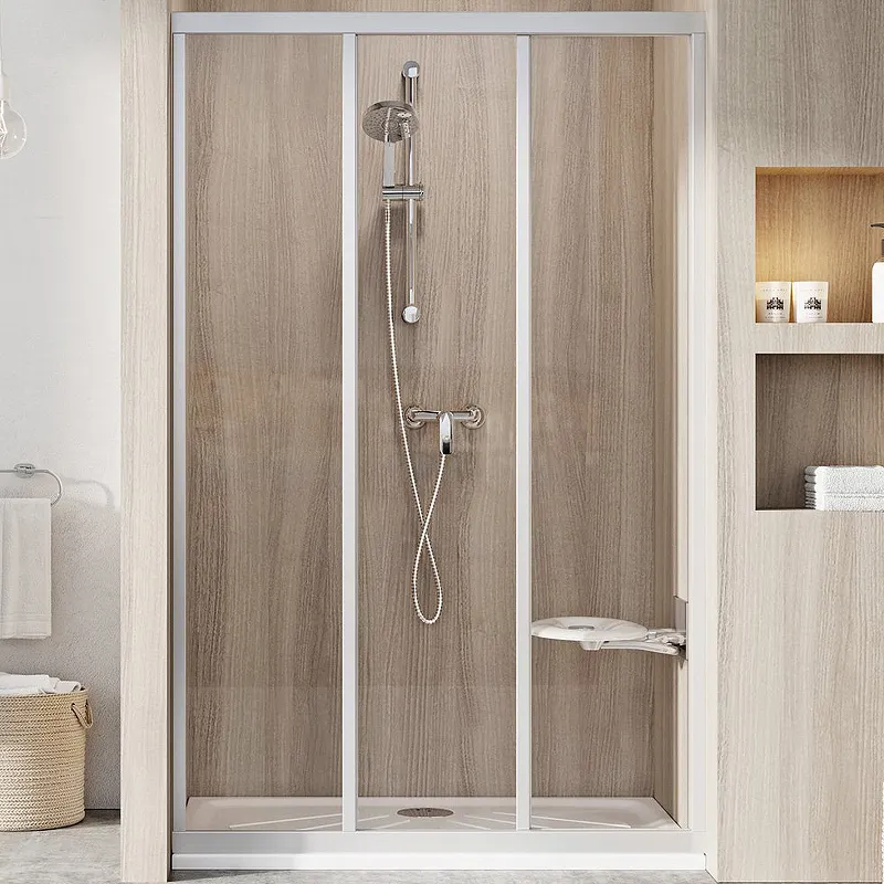 - Экономия пространства: Раздвижная конструкция позволяет оптимально использовать площадь даже в небольших ванных комнатах.