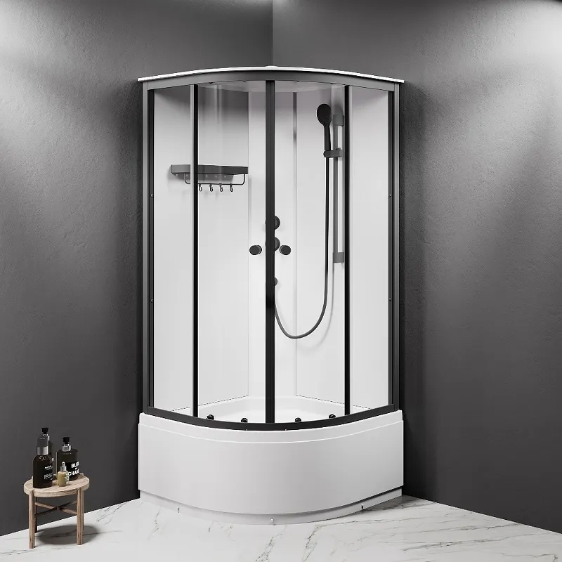- Элегантный дизайн: Черный матовый профиль из алюминия и прозрачные закаленные стекла придают кабине современный вид.