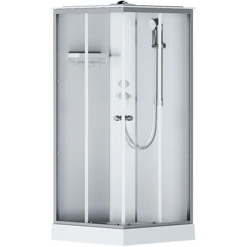 Душевая кабина AM.PM X-Joy 90х90 W94C-403-090MT.Характеристики: Цвет профиля: хром матовый. Материал профиля: алюминий. Исполнение полотна двери: прозрачное стекло, толщиной 4 мм. Исполнение задних стенок: стекло, белого цвета. Размер (ШхВхД): 895х2100х895 мм. Ширина входа: 430 мм. Форма: квадратная. Конструкция дверей: раздвижная. Количество секций двери: 2. Ориентация: универсальная. Материал поддона: ABS-пластик. Высота поддона: 140 мм. Глубина поддона: 45 мм. Тип поддона: низкий. Антискользящее покрытие. Диаметр сифона: 52 мм. Крыша. Вентиляция. Тропический (верхний) душ. Смеситель. Душевой гарнитур. Полочка с крючками. Монтаж: в угол. В комплекте поставки: Профили. Передние стекла. Задние стенки. Купол с верхним душем. Ручной душ. Поддон. Сифон. Набор креплений. Инструкция.
