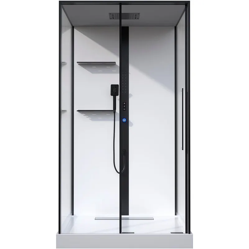 Душевая кабина Black&White Galaxy G8038 110x90 8038000.Характеристики: Цвет профиля: черный матовый. Материал профиля: алюминий. Исполнение полотна двери: прозрачное закаленное стекло толщиной 6 мм. Боковые стекла толщиной 5 мм. Цвет задней стенки: белый. Материал задней стенки: стекло высокого качества Super White, с применением в качестве исходного материала стекла Optiwhite от Pilkington (Англия), толщиной 5 мм. Габариты душевой кабины (ШхВхД): 1150х2150х900 мм. Регулировочные размеры (ШхД): 1145-1150х895х900 мм. Материал поддона: акрил. Высота поддона: 150 мм. Тип поддона: низкий. Конструкция дверей: раздвижная. Вход: спереди. Форма: прямоугольная. Ориентация: универсальная. Монтаж: пристенный в угол. Быстрая сборка без силикона. Крыша из белого закаленного стекла. Надежная стальная ручка. Тропический (верхний) душ (ШхД): 290х219 мм. Ручной душ: 3 режима. Усиленный гладкий, черный шланг. Смеситель: с индикацией температуры воды (индикация работает от набегающего потока воды, подключение к внешнему источнику питания не требуется). Кнопочное переключение функций. Полочка: 2 шт. Гидромассажная панель. В комплекте поставки: Душевая кабина.