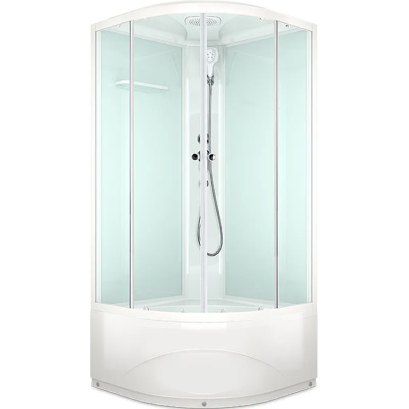 - Удобство использования: Раздвижные двери и фронтальный вход облегчают доступ в душевую кабину.