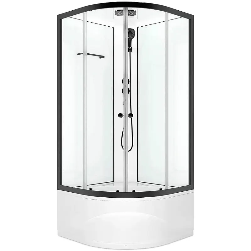 - Эстетика и практичность: Черный профиль и прозрачные стекла придают кабинке стильный вид, а также обеспечивают легкий уход.