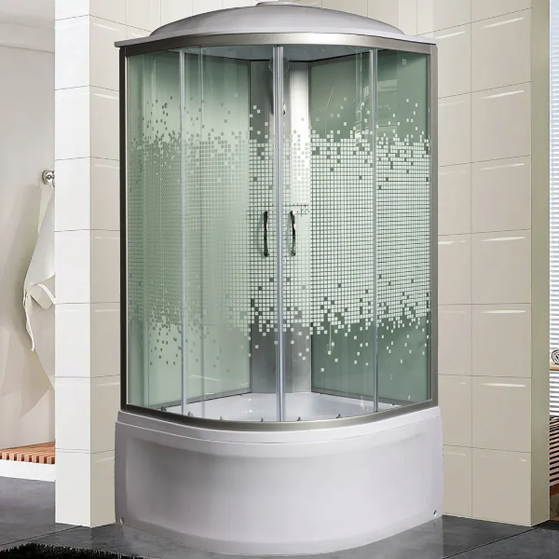 Душевая кабина Мономах 80x80x43 С МЗ 10000005785.Характеристики: Форма: четверть круга. Габариты (ШхДхВ): 800х800х2100 мм. Ориентация: универсальная. Управление: ручное. Исполнение полотна двери: прозрачное стекло с рисунком мозаика, толщиной 4 мм. Конструкция двери: раздвижная. Количество дверей: 2. Цвет задней стенки: белый. Материал задней стенки: крашенное стекло. Цвет корпуса: белый. Материал профиля: алюминий. Цвет профиля: хром матовый. Материал поддона: акрил, антискользящие покрытие. Тип поддона: высокий. Высота поддона: 430 мм. Регулируемая высота ножек. Смеситель: стационарный. Сифон: с гидрозатвором. Полочка. Тропический (верхний) душ. Вентиляция. Сиденье. В комплекте поставки: душевая кабина.