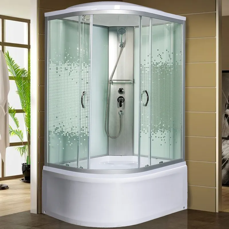 Душевая кабина Мономах XL 110x80x44 МЗ R 10000012120.Характеристики: Цвет профиля: хром матовый. Материал профиля: алюминий. Исполнение полотна двери: прозрачное стекло с рисунком мозаика, толщиной 4 мм. Цвет задней стенки: белый. Исполнение задней стенки: крашенное стекло. Размеры (ШхВхД): 1100х2300х800 мм. Материал поддона: акрил. Высота поддона: 440 мм. Глубина поддона: 330 мм. Антискользящие покрытие. Тип поддона: высокий. Съемный экран. Регулируемая высота ножек. Конструкция дверей: раздвижная. Количество дверей: 2. Форма: асимметричная. Ориентация: правосторонняя. Встроенное сиденье на поддоне. С крышей. Вентиляция. Управление: ручное. Смеситель: стационарный. Тропический (верхний) душ (системой против известковых отложений). Ручной душ 3-функциональный системой Easy Clean (легкое очищение). Душевой шланг системой Anti-twist (вращение шланга на 360 градусов). Полочка. Сборка без силикона. Монтаж: пристенный, в угол. В комплекте поставки: Душевая кабина. Поддон. Сифон с гидрозатвором.