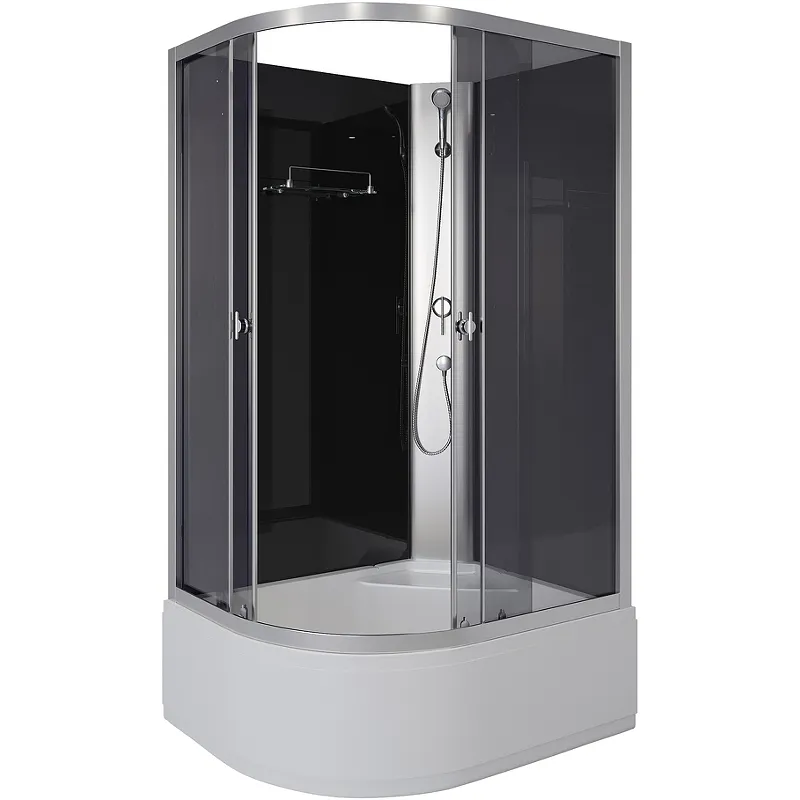 Душевая кабина Niagara Eco 110x80 R E110/80/40R/TN/BK.Характеристики: Цвет профиля: серебро. Материал профиля: алюминий. Полотно двери: тонированное стекло толщиной 4 мм. Задняя стенка: стекло черного цвета. Форма: асимметричная. Конструкция дверей: раздвижная. Количество секций двери: 2. Ширина входа: 460 мм. Размеры (ШхВхД): 1100х1950х800. Материал поддона: ABS-пластик. Тип поддона: высокий, 400 мм. Глубина поддона: 270 мм. Антискользящее покрытие. Регулируемая высота ножек:15 мм. Усиленное дно поддона, нагрузка до 350 кг. Встроенное сиденье. Полочка. Ручной душ. Ориентация: правая. Бессиликоновая сборка. Монтаж: пристенный, в угол. В комплекте поставки: Душевая кабина.