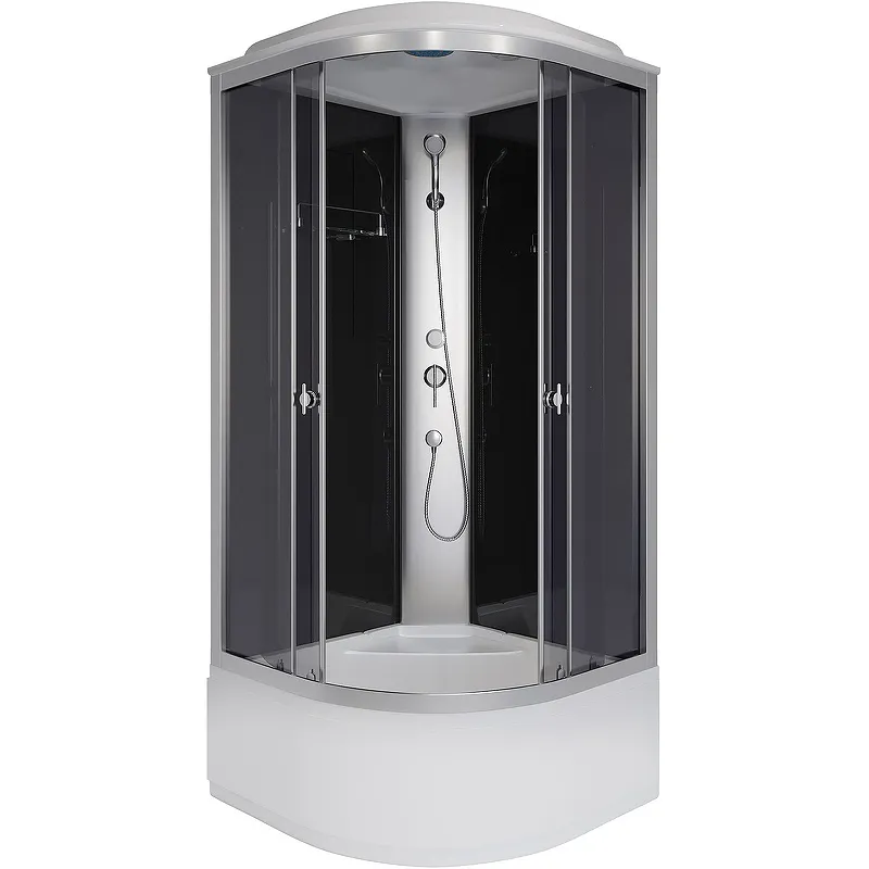 Душевая кабина Niagara Eco 90x90 E90/40/TN.Характеристики: Цвет профиля: серебро. Материал профиля: алюминий. Полотно двери: тонированное стекло толщиной 4 мм. Задняя стенка: стекло черного цвета. Форма: четверть круга. Конструкция дверей: раздвижная. Количество секций двери: 2. Ширина входа: 500 мм. Размеры (ШхВхД): 900х2150х900. Материал поддона: ABS-пластик. Тип поддона: высокий, 400 мм. Глубина поддона: 270 мм. Встроенное сиденье. Антискользящее покрытие. Регулируемая высота ножек: 15 мм. Усиленное дно поддона, нагрузка до 350 кг. Верхний душ. Полочка. Ручной душ. Ориентация: универсальная. Бессиликоновая сборка. Монтаж: в угол. В комплекте поставки: Душевая кабина.