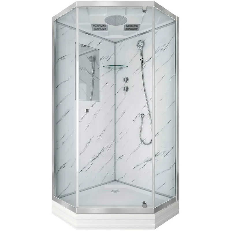 Душевая кабина Niagara Luxe 100x100 NG-7702DM.Характеристики: Цвет профиля: хром. Материал профиля: алюминий. Исполнение полотна двери: прозрачное закаленное стекло, толщиной 6 мм. Исполнение задней стенки: закаленное стекло. Цвет задней стенки: белый мрамор. Размеры (ШхВхД): 1000х2100х1000. Материал поддона: акрил. Высота поддона: 150 мм. Глубина поддона: 50 мм. Антискользящее покрытие. Тип поддона: низкий. Регулируемая высота ножек. Форма: призма. Конструкция дверей: распашная. Вход: спереди. Ширина входа: 520 мм. Зеркало. Полочка. Вентиляция. Смеситель. Тропический (верхний душ). Ручной душ. Ориентация: универсальная. Монтаж: пристенный, в угол. В комплекте поставки: Душевая кабина.