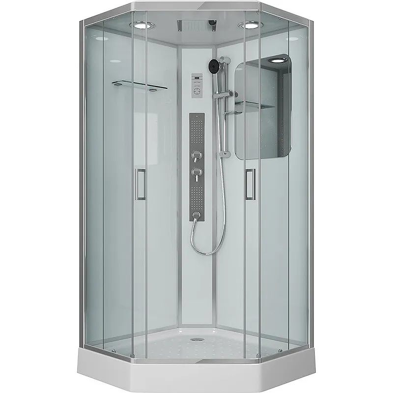 - Экономия пространства: Компактный размер 100x100 см и угловая конструкция делают кабину идеальной для небольших ванных комнат.