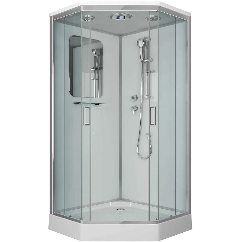 - Эргономичность: Раздвижные двери и низкий акриловый поддон с антискользящим покрытием обеспечивают безопасность и удобство.