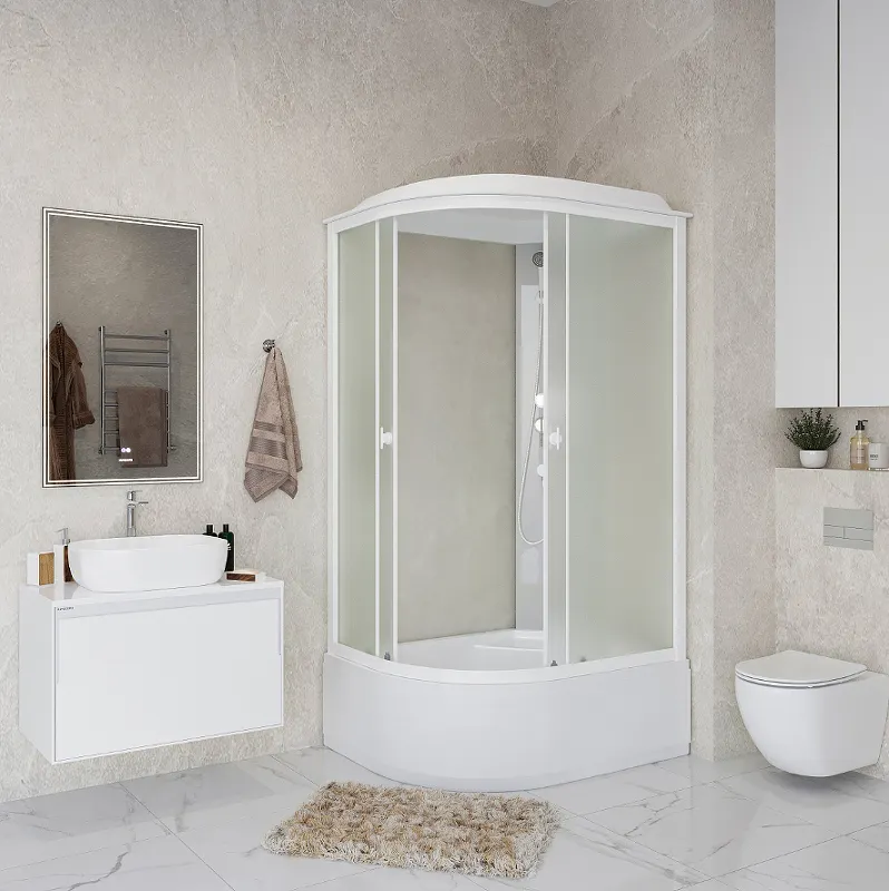 - Антискользящее покрытие: Поддон из ABS-пластика с антискользящим покрытием обеспечивает безопасность во время душа.