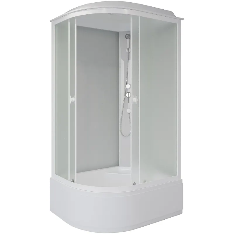 Душевая кабина Niagara Promo 100x80 с высоким поддоном — функциональное решение для современных ванных комнат. Эта угловая душевая кабина с крышей и асимметричной формой идеально подходит для квартир, где важно рациональное использование пространства. Матовое стекло и белый алюминиевый профиль придают ей стильный и современный вид.