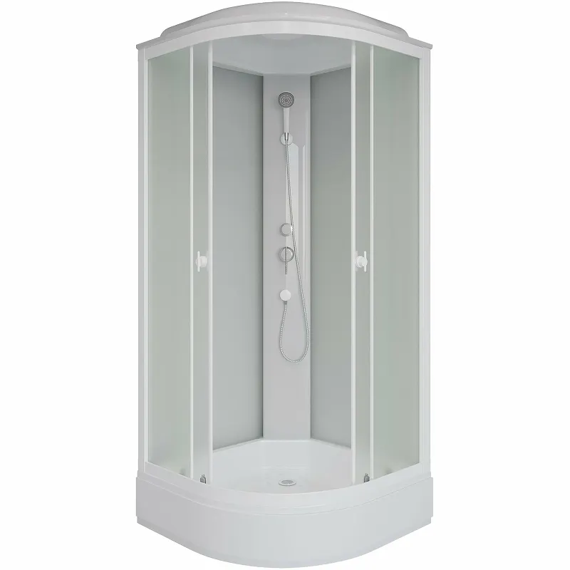 Душевая кабина Niagara Promo 90x90 P90/26/MT.Характеристики: Цвет профиля: белый. Материал профиля: алюминий. Исполнение полотна двери: матовое стекло, толщиной 4 мм. Материал задней стенки: матовое стекло. Размеры (ШхВхД): 900х2150х900. Материал поддона: ABS-пластик. Высота поддона: 260 мм. Глубина поддона: 130 мм. Антискользящее покрытие. Тип поддона: средний. Усиленное дно поддона, нагрузка до 350 кг. Регулируемая высота ножек: 15 мм. Форма: четверть круга. Конструкция дверей: раздвижная. Количество секций двери: 2. Ширина входа: 440 мм. Тропический (верхний) душ. Смеситель. Ручной душ. Ориентация: универсальная. Сборка без силикона. Монтаж: в угол. В комплекте поставки: Душевая кабина.