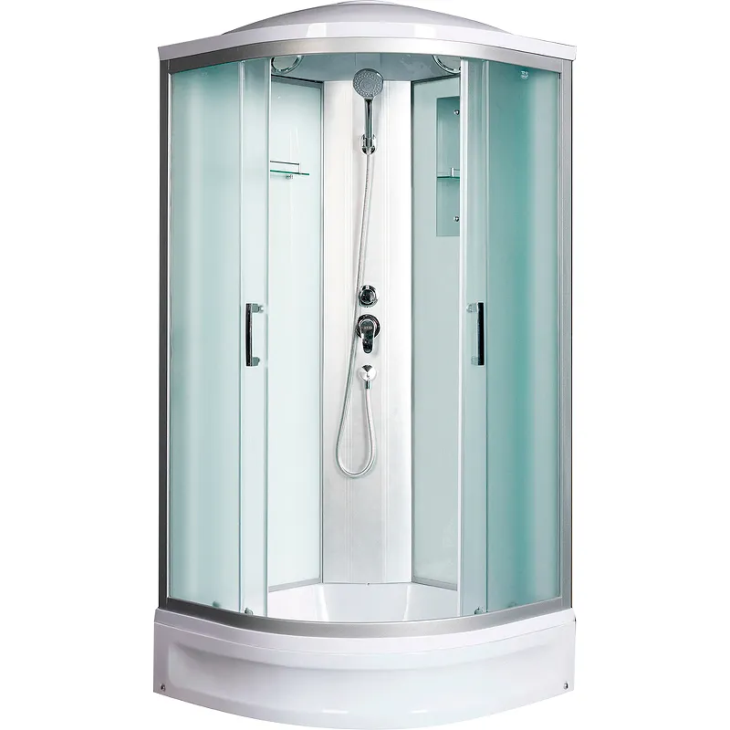 - Функциональные аксессуары: Встроенное зеркало, стеклянная полочка и ручной душ делают использование кабины предельно удобным.