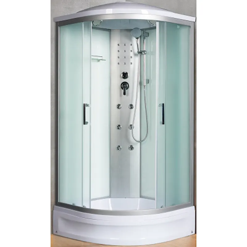 Душевая кабина River Dunay 80x80 МТ 10000003136 превосходно сочетается в интерьере любой стилистической направленности за счет изысканных форм и плавных линий. Полотно двери выполнено из закаленного стекла толщиной 4 мм. Кабина оснащена стеклянной полочкой и ручным душем. На стенке, внутри душевой кабины установлена панель управления с сенсорным дисплеем. Данная модель имеет радио, встроенные гидроизолированные динамики.Характеристики: Материал профиля: Алюминий. Цвет профиля: Матовый хром. Размер (ШxВxД): 80x210x80 см. Вес: 62,6 кг. Толщина стекла: 4 мм. Материал полотна двери: Стекло. В комплекте поставки: Душевая кабина (стекла, профиль, поддон). Верхний и ручной душ. Держатель для ручного душа. Смеситель. Полочка. Вентиляция. Гидромассаж, 6 форсунки для поясничного массажа. Радио, гидроизолированные динамики. Зеркало.