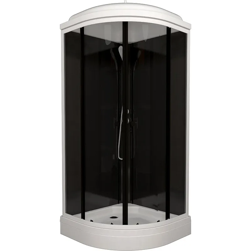 Душевая кабина Triton Нова 88x88 Щ0000062583.Характеристики: Цвет профиля: белый. Материал профиля: алюминий. Размер (ШхВхД): 880х2175х880 мм. Исполнение полотна двери: прозрачное закаленное стекло, толщиной 4 мм. Исполнение задних стенок: черное стекло. Материал поддона: акрил. Высота поддона: 170 мм. Глубина поддона: 65 мм. Вид поддона: низкий. Форма: четверть круга. Ориентация: универсальная. Расположение: угловое. Вход: спереди. Конструкция двери: раздвижные. Механизм открывания дверей: ролики скольжения. Ширина входа: 545 мм. Крыша. Управление: ручное. Тропический (верхний) душ. Ручной душ. Смеситель. Сифон: 50 мм (click-clack). Максимальная нагрузка: 350 кг. В комплекте поставки: Комплект передних стекол. Комплект задних стекол. Комплект направляющих. Поддон душевой со съемным экраном. Каркас для поддона стальной. Центральная душевая панель (Стойка). Крыша. Смеситель с лейкой и тропическим верхним душем. Сифон.
