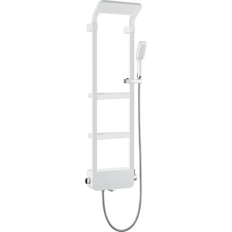 Душевая панель Black&White Seasons 1210w0.Характеристики: Цвет: снежный белый. Размер: 405 x 1300 мм. Форма: прямоугольная. Картридж: керамический, 35 мм. Материал: АBS-пластик, нержавеющая сталь, латунь. Гибкая подводка воды: 1/2 дюйма. Гибкий шланг: 1500 мм. Гидромассажные форсунки с функцией распыления. Переключение функций: верхний душ, ручной душ и поворотный излив. Покрытие, не оставляющее отпечатков: Anti‑fingerprint. Полки для душевых принадлежностей: 2 шт. Ручной душ: регулировка по высоте. Функции правого переключателя: вкл / выкл, горячий / холодный, контроль потока воды. Тропический душ: высококачественный ABS, угол наклона 45 градусов, подходит для сверхнизкого давления воды, 300 х145 мм. Технология подмеса воздуха в тропический душ: Air‑injection. В комплекте поставки: Панель. Гарантийный талон. Инструкция по установке и эксплуатации.